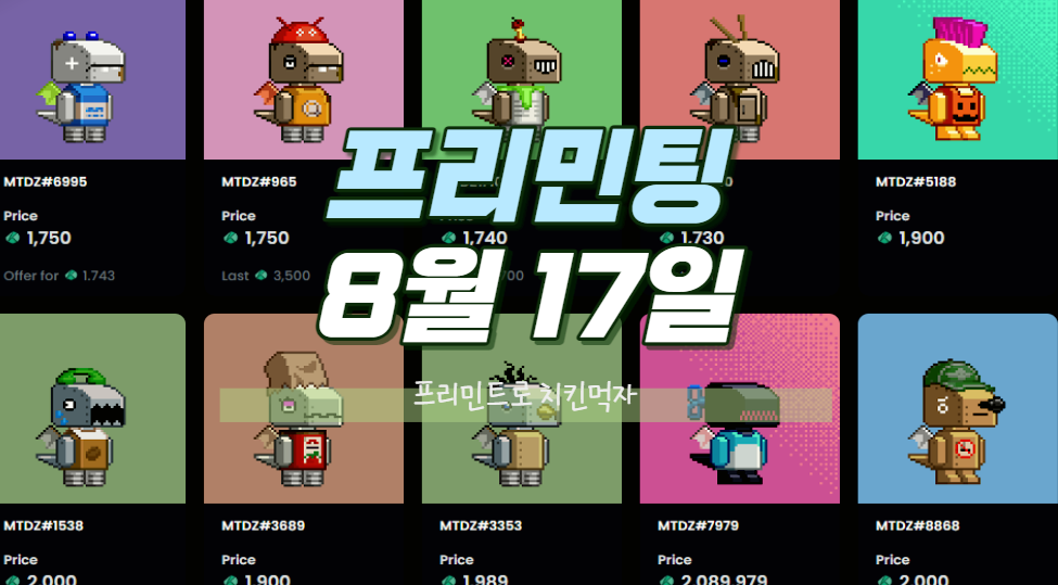 | Premint : NFT 민팅 프리민팅 (8월8일) (3) | 2022.08.08 |